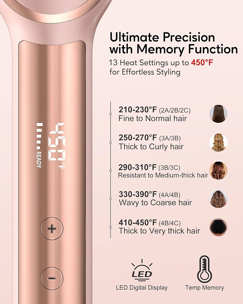برای انواع موها، از موهای نازک تا ضخیم و کمی وزدار مناسب است و با تنظیم دما قابل استفاده است.