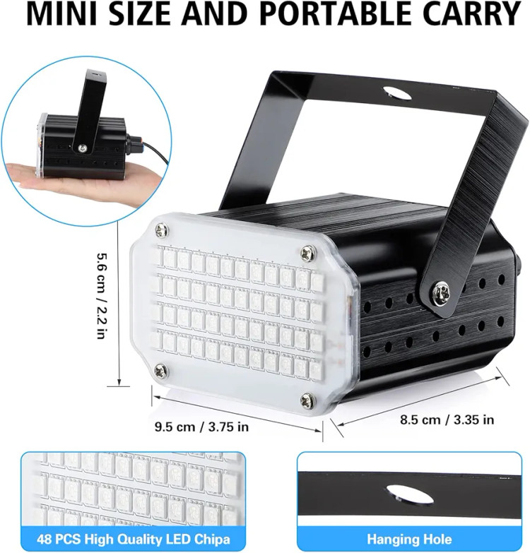 این استروب برای مهمانیها، دیسکو، جشنها، اجراهای کوچک و فضاهای متوسط طراحی شده است.