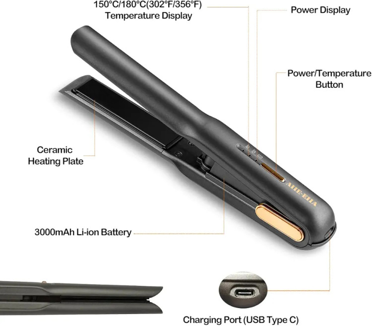 جنس صفحات آن از آلومینیوم با پوشش سرامیکی ساخته شده که گرما را بهصورت یکنواخت توزیع میکند و از آسیب حرارتی به مو جلوگیری میکند. با قابلیت تنظیم دما و شارژ USB‑C قابل حمل، میتوانید هر زمان و در هر مکان به راحتی موهای خود را حالت دهید.