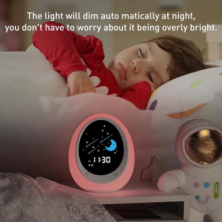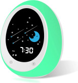 این محصول بهعنوان یک ساعت بیدارباش کودک و دستگاه خوابآموز طراحی شده و با ارائه صداهای طبیعت، موسیقی ملایم و نور شب (Night Light)، محیطی امن و آرام برای خواب شبانه ایجاد میکند. نمایشگر بزرگ و قابل تنظیم آن به کودک کمک میکند زمان را بهتر درک کند و بدون نگرانی، ساعت بیداری را تشخیص دهد.