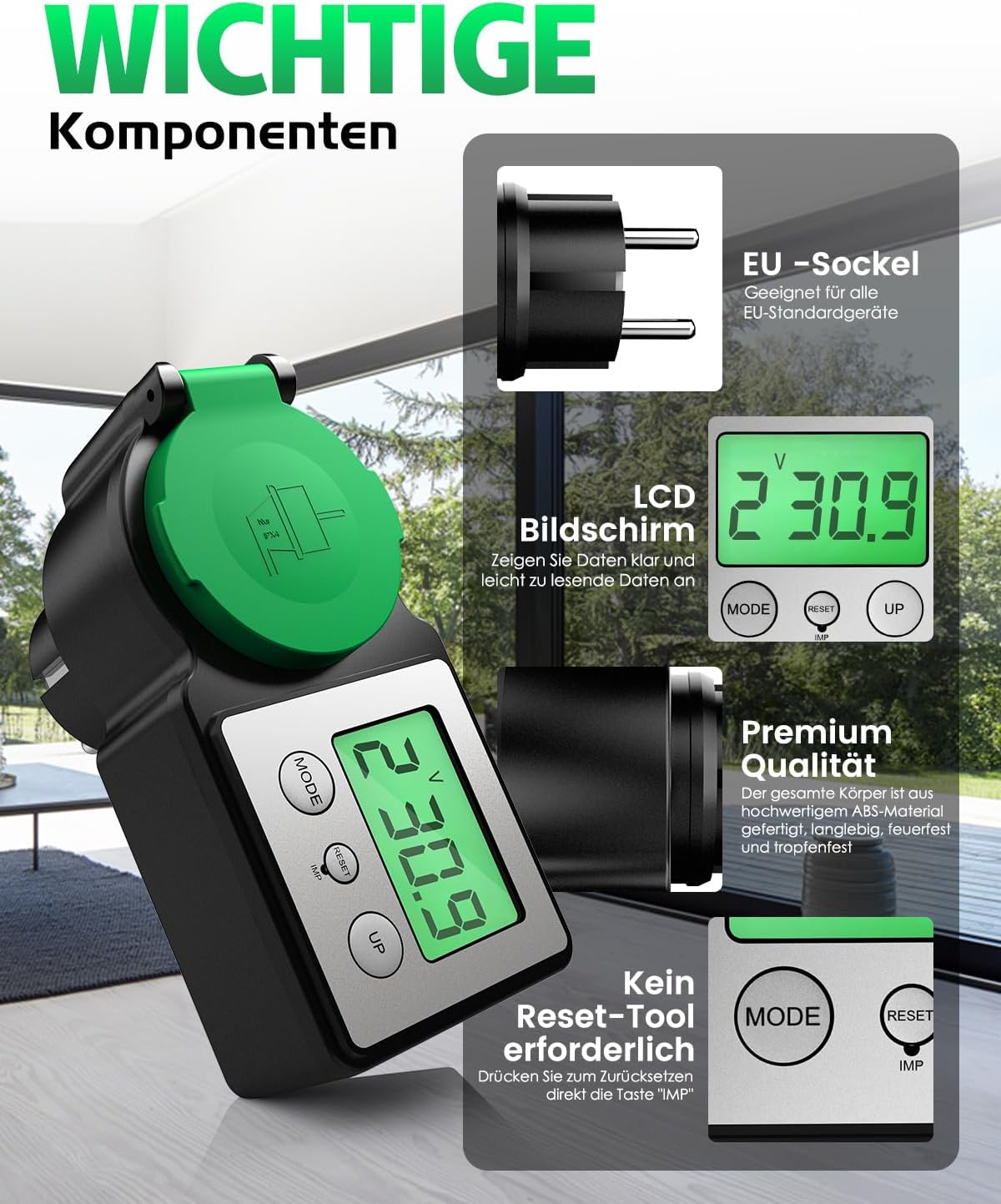 انرژیمتر GreenSun مدل HMC-HL-L-DE یک دستگاه دقیق و قابلاعتماد برای اندازهگیری و پایش مصرف برق در محیطهای خانگی و نیمهصنعتی است. این محصول با طراحی مستحکم و استاندارد IP44، در برابر رطوبت و پاشش آب مقاوم بوده و برای استفاده در فضاهای داخلی و حتی محیطهای نیمهباز گزینهای عالی به شمار میآید. اگر قصد دارید میزان مصرف برق دستگاهها یا بازده یک سیستم کوچک خورشیدی (نظیر ب balkonkraftwerk) را بررسی کنید، این مدل یکی از بهترین گزینههای موجود در بازار است.