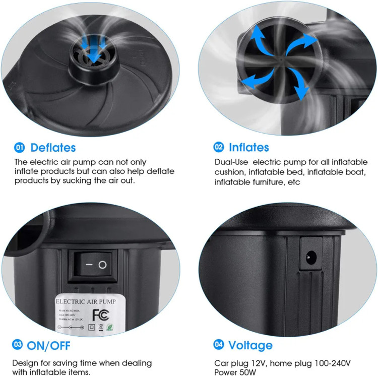 این پمپ برای تشک بادی، مبل و صندلی بادی، قایقهای کوچک و محصولات بادی تفریحی مناسب است.