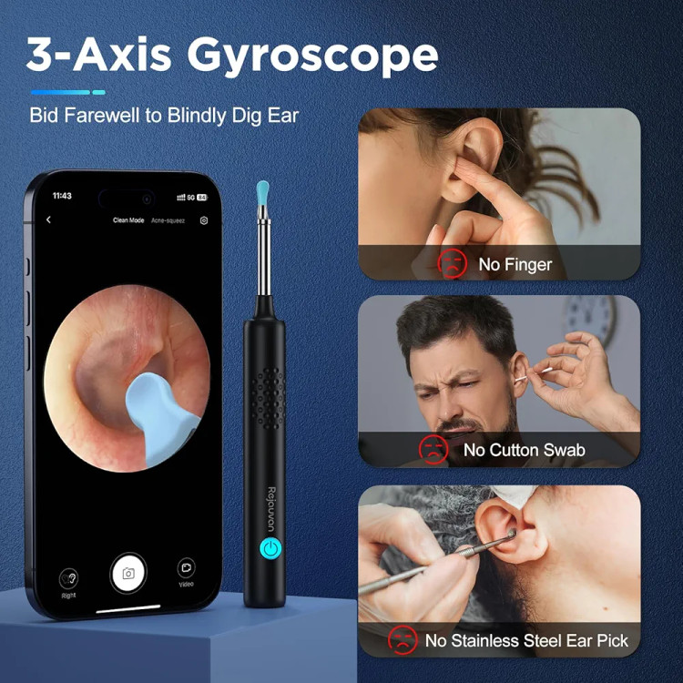 دستگاه بازرسی و پاکسازی گوش بیسیم Rejauvan یک ابزار حرفهای و هوشمند است که با طراحی مدرن و قابلیت اتصال بیسیم به گوشی هوشمند، تجربهای امن و دقیق در مراقبت از گوش شما ارائه میدهد. این دستگاه با دوربین HD داخلی و چراغ LED کمنور، امکان مشاهده دقیق داخل کانال گوش را فراهم میکند و به شما کمک میکند با ایمنی کامل، جرم و موم اضافی گوش را شناسایی و پاک کنید.