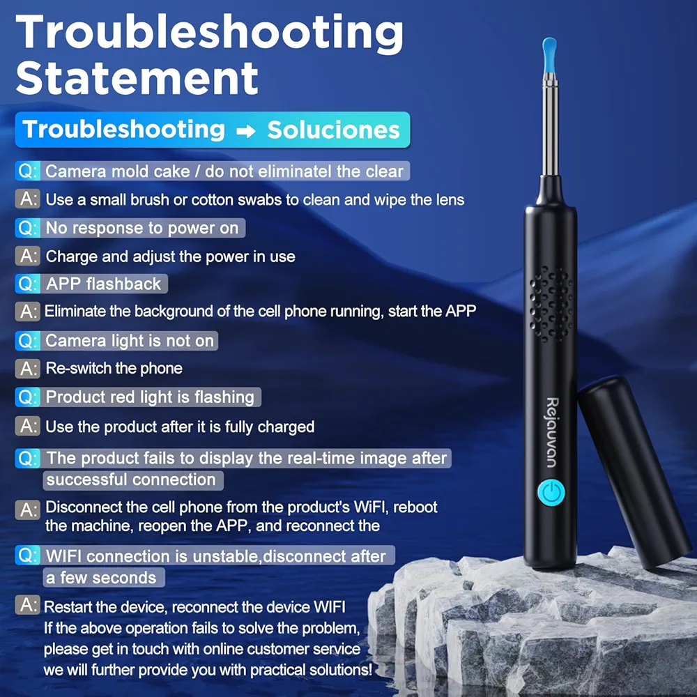 دستگاه بازرسی و پاکسازی گوش بیسیم Rejauvan یک ابزار حرفهای و هوشمند است که با طراحی مدرن و قابلیت اتصال بیسیم به گوشی هوشمند، تجربهای امن و دقیق در مراقبت از گوش شما ارائه میدهد. این دستگاه با دوربین HD داخلی و چراغ LED کمنور، امکان مشاهده دقیق داخل کانال گوش را فراهم میکند و به شما کمک میکند با ایمنی کامل، جرم و موم اضافی گوش را شناسایی و پاک کنید.