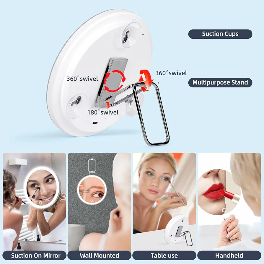 بدنهی سبک و مقاوم همراه با طراحی مدرن، این آینه را برای اتاق خواب، میز آرایش، حمام و حتی سفر مناسب کرده است. پایهی قابل تنظیم یا مکندهٔ قدرتمند (بسته به مدل) امکان استفاده در زاویههای مختلف را فراهم میکند و نور یکنواخت LED اجازه میدهد جزئیات را با وضوح کافی ببینید، بدون ایجاد سایههای مزاحم.