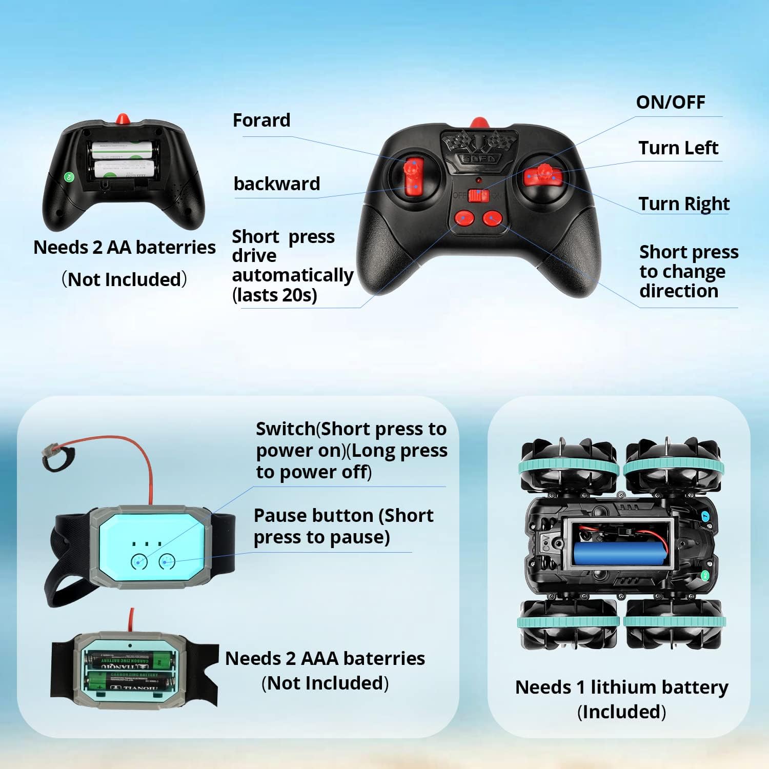 این ماشین کنترلی برای کودکان، نوجوانان و علاقهمندان به اسباببازیهای ریموت کنترل ایدهآل است و با قابلیت حرکت روی زمین و آب، به یک گزینه بینظیر برای بازیهای خارج از خانه یا حتی استخرهای کوچک تبدیل شده است. AmazeFun CV-8500 نه تنها یک اسباببازی، بلکه تجربهای آموزشی و مهارتی برای تقویت هماهنگی دست و چشم و درک حرکت است.
