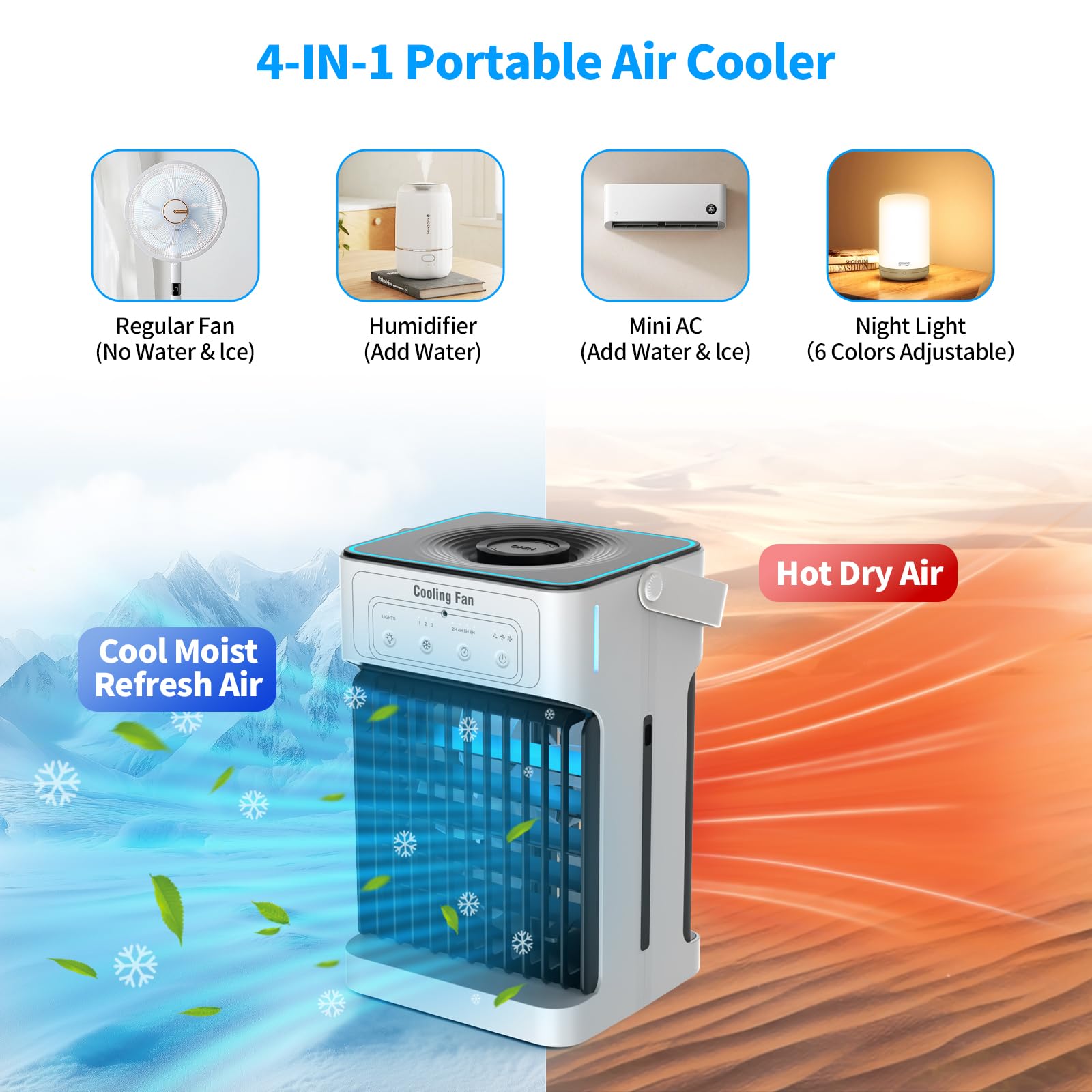 این کولر رومیزی با طراحی مدرن و کمحجم، بهراحتی روی میز کار، کنار تخت خواب، میز آرایش یا حتی داخل چادر مسافرتی قابل استفاده است. وجود مخزن آب شفاف در کناره دستگاه به شما امکان کنترل میزان آب را در هر لحظه میدهد. همچنین میتوانید با اضافه کردن یخ، شدت خنککنندگی را افزایش دهید.