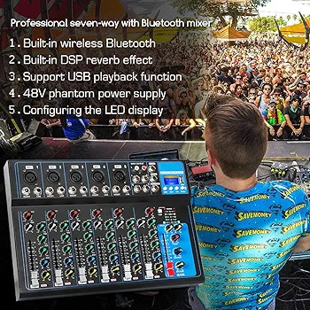 Depusheng HT7 از فناوری USB و بلوتوث پشتیبانی میکند، بنابراین میتوانید موسیقی خود را از دستگاههای مختلف پخش کرده یا خروجی میکسر را مستقیم به کامپیوتر و یا حافظه USB ضبط کنید. ویژگی فانتوم پاور +48 ولت امکان استفاده از میکروفونهای کاندنسر را نیز فراهم میکند. طراحی جمع و جور و کاربردی این میکسر، آن را برای استودیوهای خانگی، اجرای زنده، پادکست، استریمینگ و کارهای آموزشی موسیقی بسیار مناسب میسازد.