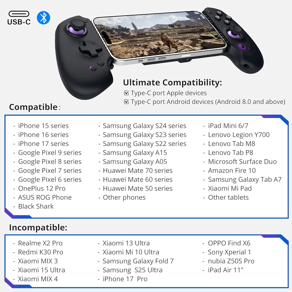 جواب: خیر، این کنترلر با iPhoneهای دارای پورت USB-C سازگار است.