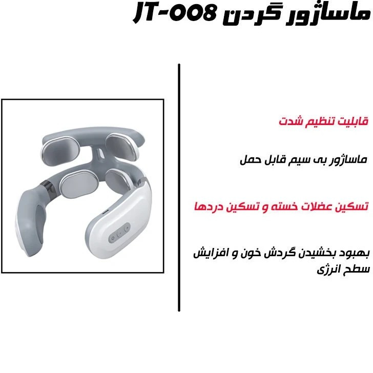 ماساژور گردن JT-008 NEW انتخابی عالی برای افرادی است که به دنبال جایگزینی مقرونبهصرفه برای ماساژهای حضوری هستند. اگر ساعات زیادی با موبایل یا لپتاپ کار میکنید، این دستگاه میتواند فشارهای وارده به مهرههای گردن را کاهش داده و آرامشی عمیق برایتان ای