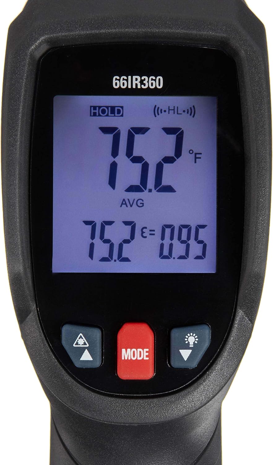 ترکیب سنسور IR با سرعت بالا، پاسخدهی سریع و نمایشگر LCD نورپسزمینه باعث میشود بتوانید حتی در محیطهای کمنور یا صنعتی بهراحتی دما را بخوانید. وجود قابلیت تنظیم امیسیویتی (Emissivity) باعث میشود 66IR360 بتواند دمای سطوح مختلف مانند فلز، سرامیک، چوب، غذا، لولهها و قطعات خودرو را با دقت بیشتری اندازهگیری کند.