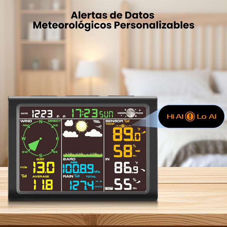 ✔ آلارمهای قابل تنظیم — هشدار در مواقع دمای شدید، باد یا بارش زیاد.