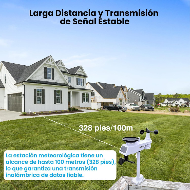 برد انتقال داده از سنسور به کنسول تا حدود ۱۰۰ متر در فضای باز است که برای نصب در باغ یا حیاط کافی میباشد.