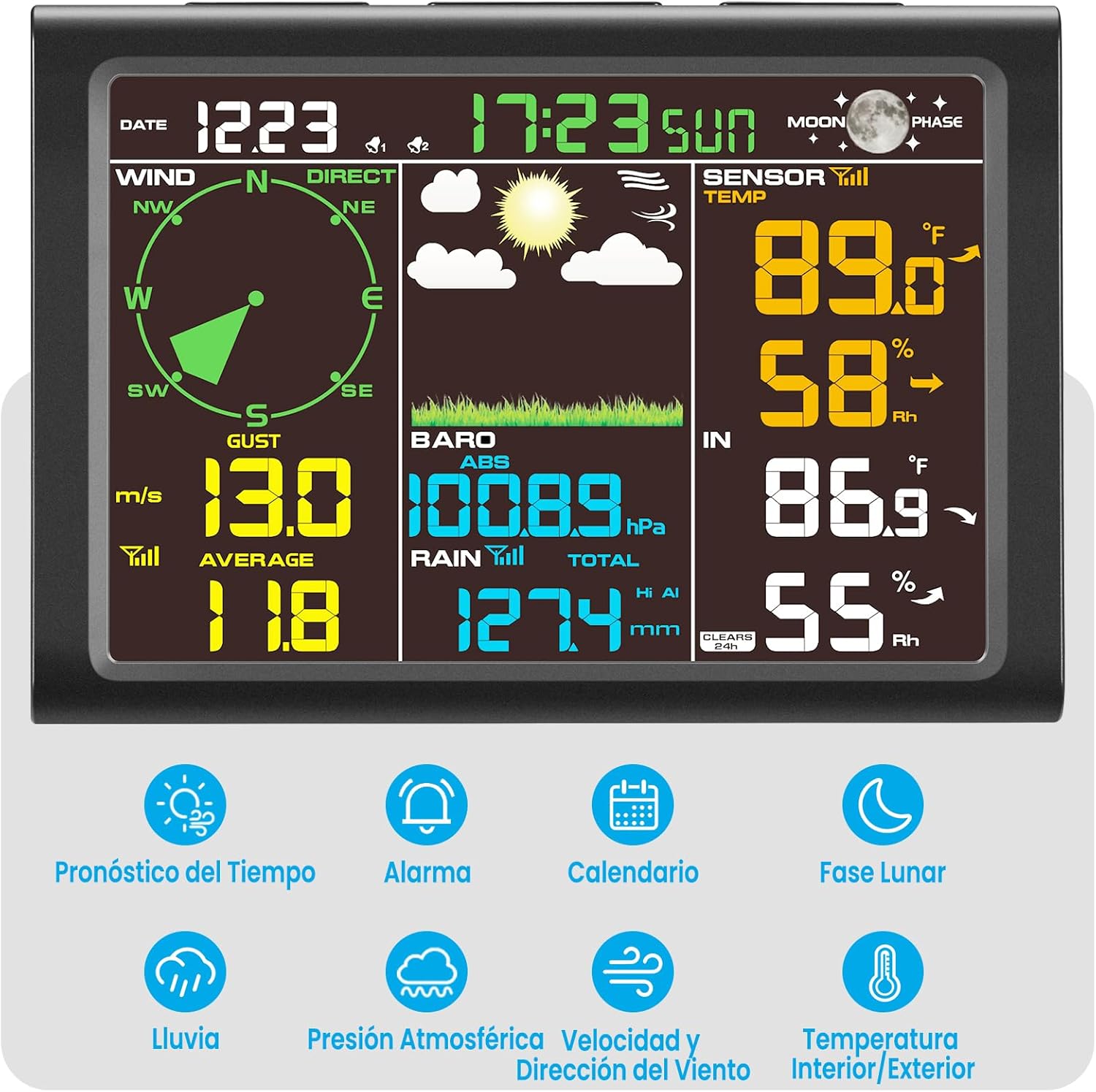 ✔ آلارمهای قابل تنظیم — هشدار در مواقع دمای شدید، باد یا بارش زیاد.