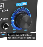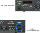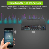 پشتیبانی از بلوتوث نسخه 5.0 امکان پخش بیسیم موسیقی از موبایل، تبلت یا لپتاپ را بدون تأخیر و افت کیفیت فراهم میکند. علاوه بر آن، وجود ورودیهای متنوع مانند RCA، USB، کارت حافظه SD و رادیو FM باعث میشود بتوانید از منابع صوتی مختلف بدون نیاز به دستگاه جانبی استفاده کنید.