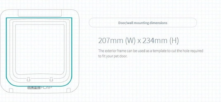 با طراحی مدرن و کیفیت ساخت بالا، این درِ هوشمند بهگونهای طراحی شده که به راحتی در درها، پنجرهها یا حتی دیوارهای خانه قابل نصب بوده و نیاز به برق شهری ندارد. عملکرد آن با ۴ باتری C تامین میشود و تا ۱۲ ماه عمر باتری دارد، همچنین شامل ۱ تگ RFID برای حیوانات فاقد میکروچیپ است.