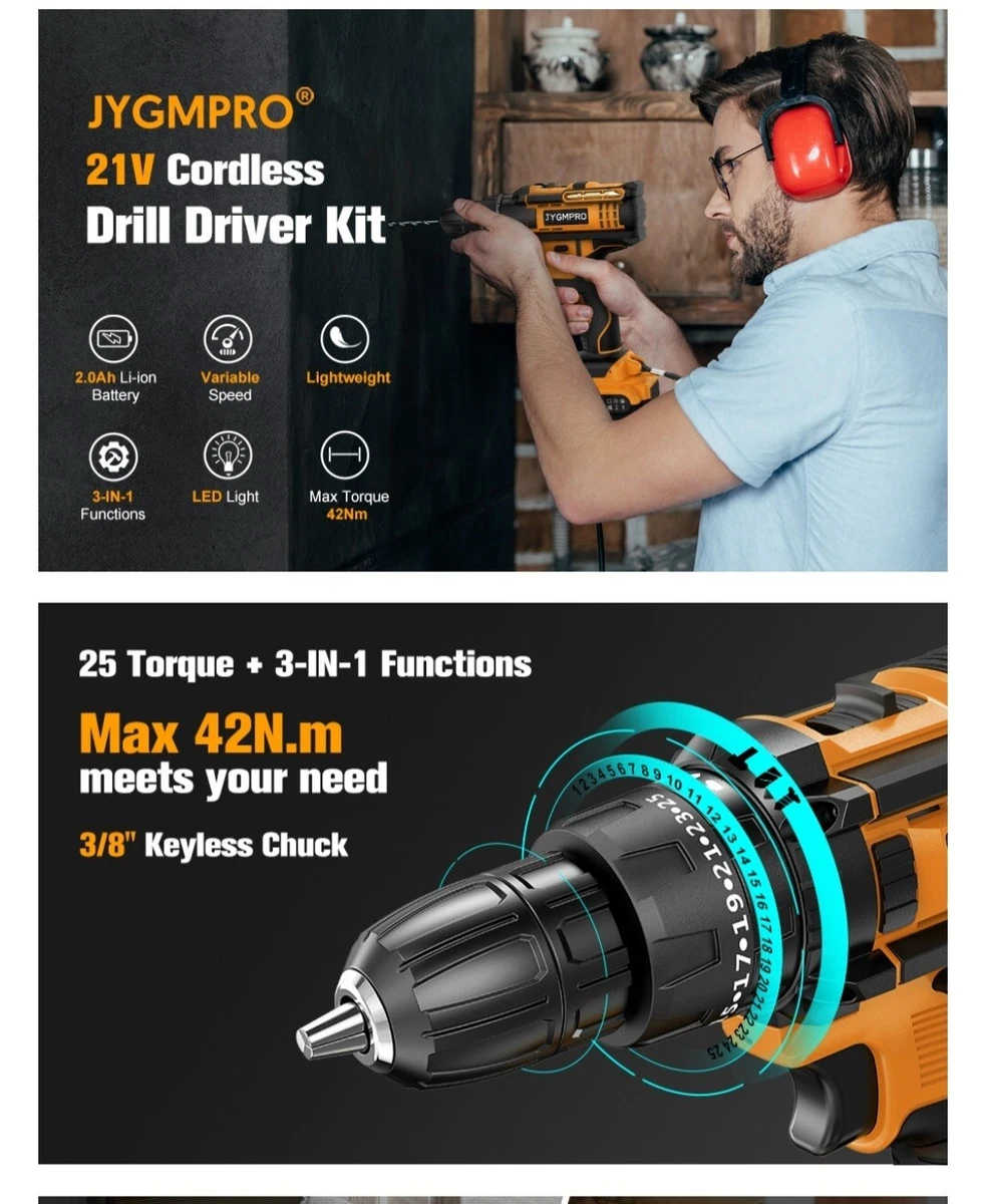 دریل پیچگوشتی شارژی JYGMPRO MR5805T 21V یک ابزار قدرتی چند منظوره و حرفهای است که برای کارهای DIY در خانه، پروژههای باغبانی، تعمیرات و نصب وراهاندازی طراحی شده است. این مدل با ولتاژ 21 ولت و امکانات کاربردی، تعادل بین قدرت، وزن مناسب و سهولت کاربری را به بهترین شکل ارائه میدهد، که آن را برای کاربران حرفهای و آماتور تبدیل به انتخابی ایدهآل میکند.