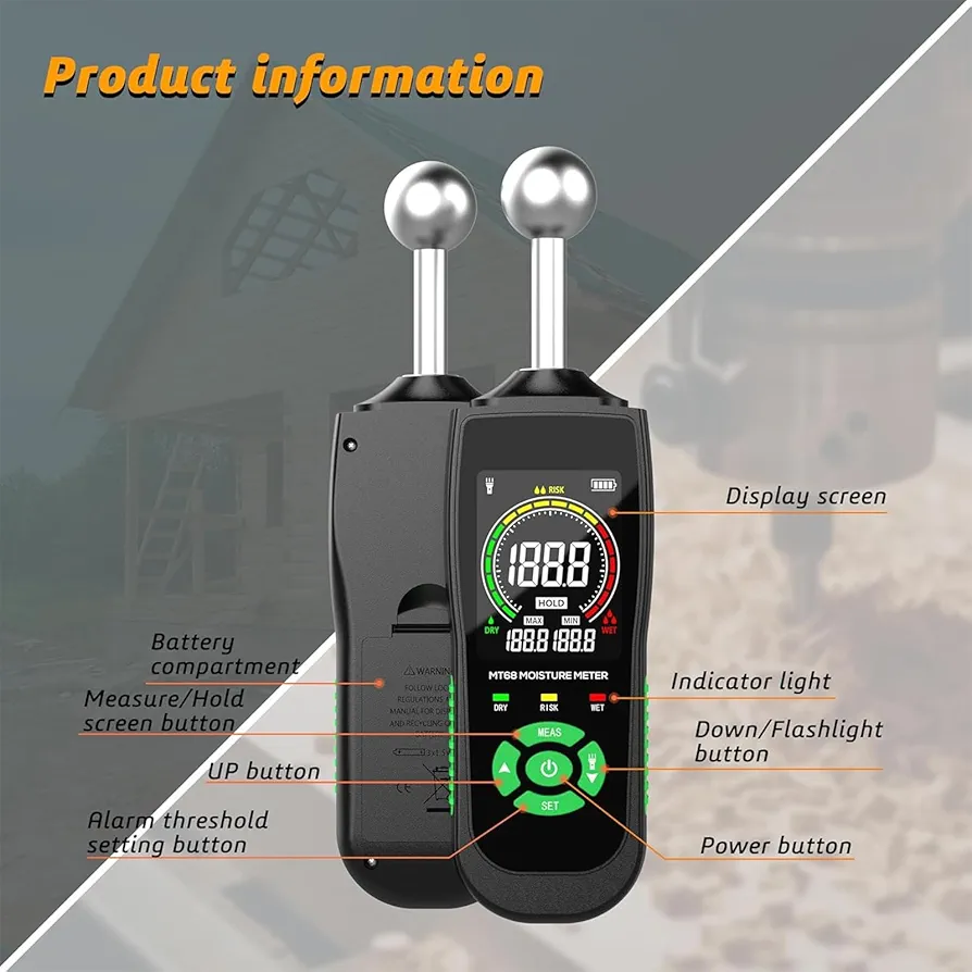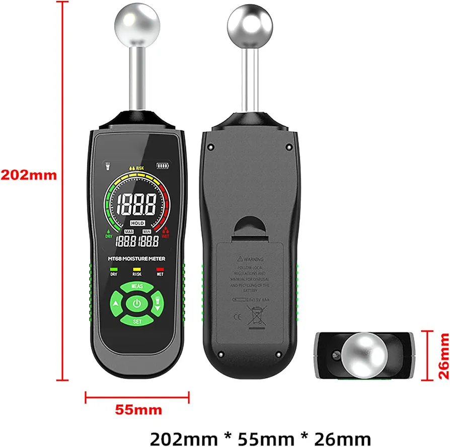 رطوبتسنج دیجیتال RDINSCOS MT68 یک ابزار حرفهای و غیرتماسی برای تشخیص سریع و دقیق میزان رطوبت در سطوح مختلف ساختمانی است. این دستگاه با طراحی مدرن و سنسور کروی پیشرفته، بدون نیاز به سوراخکاری یا آسیب به سطح، رطوبت را در عمق مواد اندازهگیری میکند و گزینهای ایدهآل برای بازرسی ساختمان، تعمیرات، و تشخیص نشتی آب محسوب میشود.