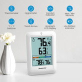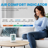 یکی از مزیتهای مهم این دماسنج دیجیتال، نمایش همزمان دما و رطوبت به همراه ثبت مقادیر حداقل و حداکثر (Min/Max) است که به شما کمک میکند تغییرات آبوهوایی را در طول زمان بهتر تحلیل کنید. همچنین وجود نشانگر وضعیت آسایش (Comfort Indicator) باعث میشود تنها با یک نگاه متوجه شوید شرایط محیط برای زندگی یا نگهداری وسایل حساس مناسب است یا خیر.
