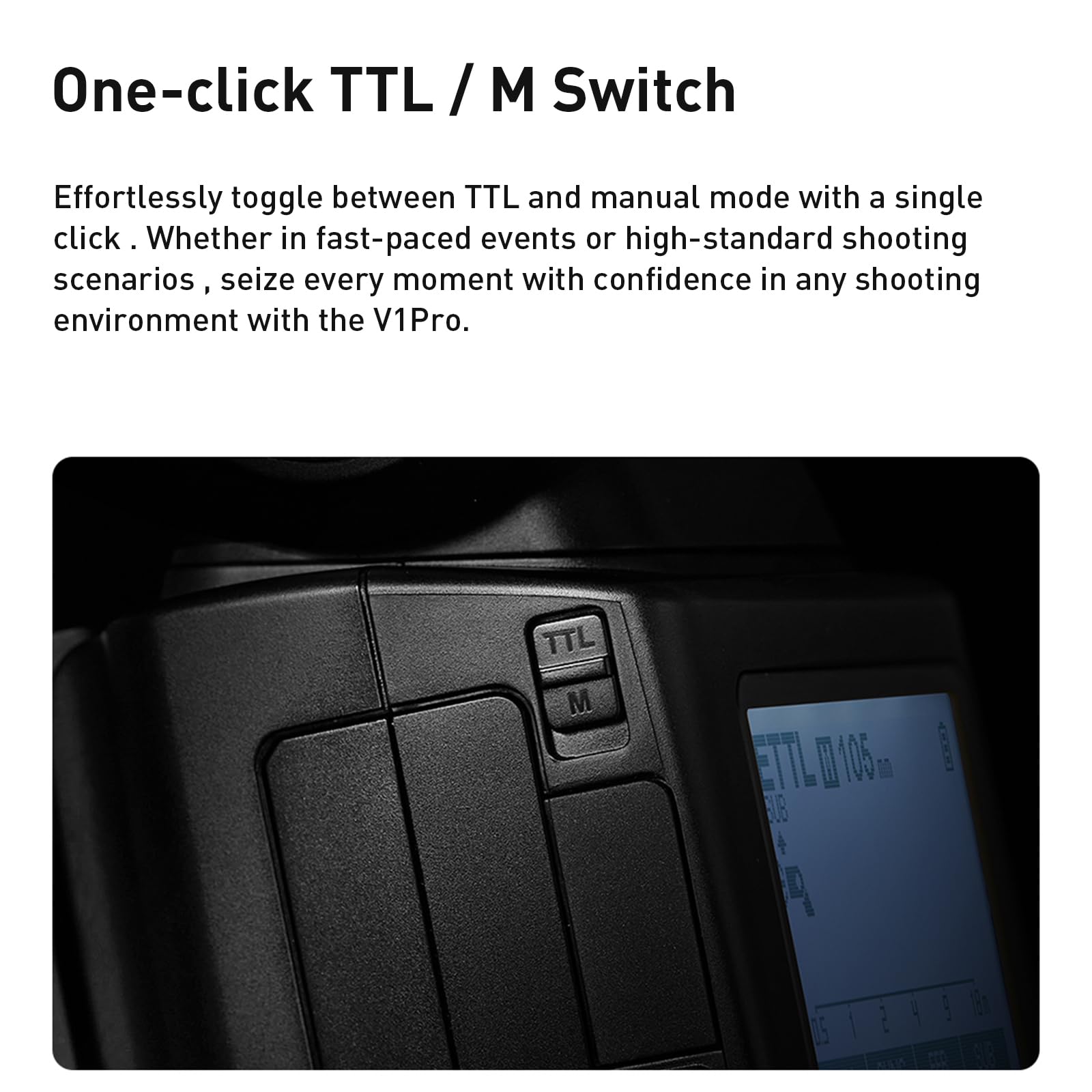 هد گرد (Round Head) در Godox V1 Pro S باعث پخش یکنواخت نور و کاهش سایههای تند میشود؛ نتیجه آن نوری طبیعیتر و شبیه به نور استودیویی است. این ویژگی در کنار قدرت خروجی 76Ws، کنترل کامل نور را حتی در شرایط نوری دشوار فراهم میکند. پشتیبانی کامل از TTL و HSS تا سرعت 1/8000 ثانیه باعث میشود بتوانید در نور شدید روز یا با دیافراگم باز، بدون افت کیفیت عکاسی کنید.