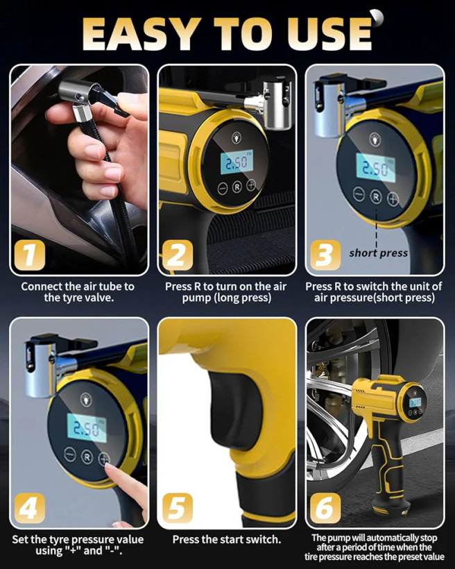 | کاربرد | مناسب برای باد کردن لاستیک خودرو، موتور، دوچرخه، توپ فوتبال و بسکتبال، قایق و تشک بادی |