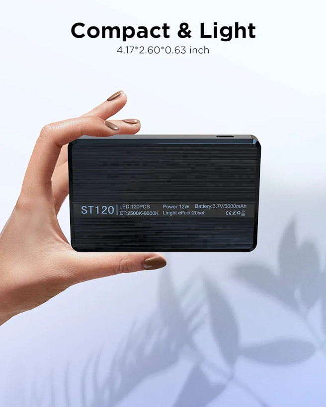 چراغ VIOK ST120 از یک باتری قابل شارژ 3000mAh بهره میبرد که امکان استفاده طولانیمدت را فراهم میسازد. با درگاه USB-C میتوانید آن را سریع شارژ کنید و بدون نیاز به کابلهای اضافی در هر جایی از آن استفاده کنید. طراحی سبک و قابلیت اتصال به گوشی، لپتاپ، سهپایه، دوربین DSLR و سیستمهای ویدئویی، این محصول را به گزینهای ایدهآل برای تولیدکنندگان محتوا تبدیل کرده است.