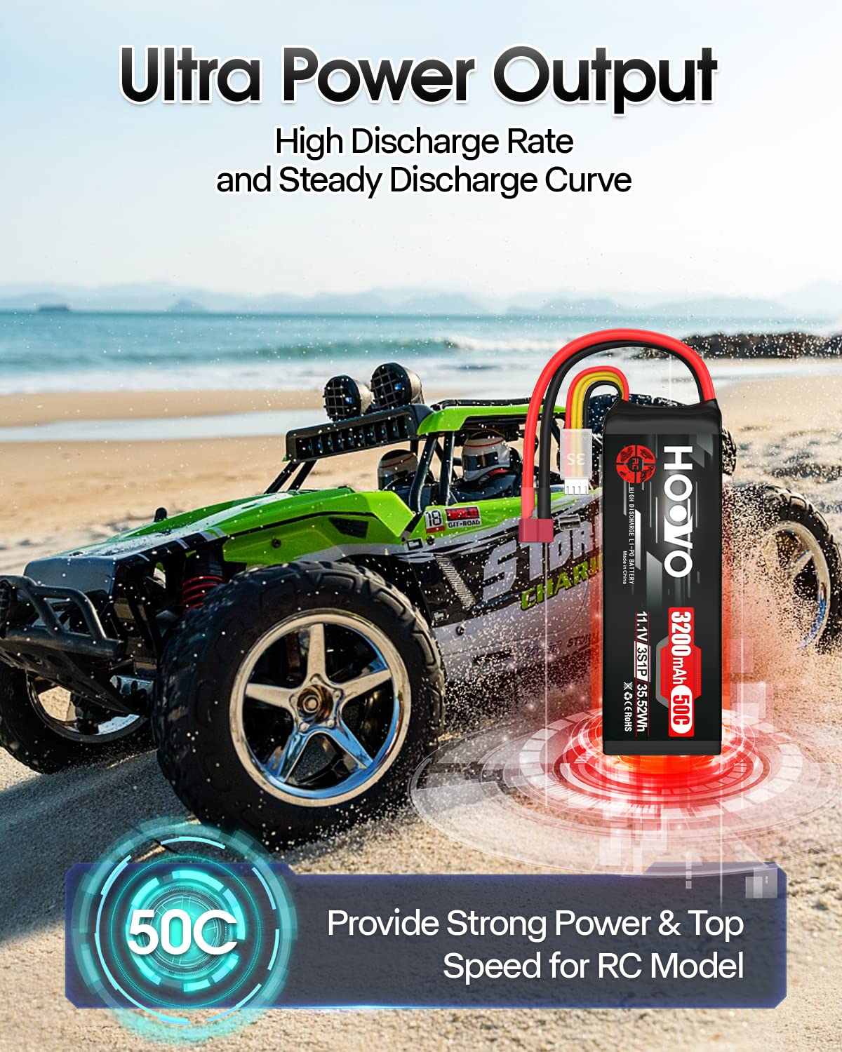 باتری HOOVO با نرخ تخلیه 50C، توان کافی برای موتورهای پرقدرت و سیستمهای پیچیده RC فراهم میکند، بدون اینکه دچار افت ولتاژ ناگهانی شود. کانکتور T-Connector (Deans)، نصب و اتصال سریع باتری را آسان کرده و سازگاری بالایی با بیشتر دستگاههای RC دارد. این باتری برای افرادی که به دنبال تجربهای بیوقفه و پر انرژی در هواپیماهای مدل، هلیکوپترها یا کوادکوپترهای خود هستند، ایدهآل است.