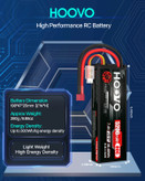 این باتری برای استفاده در ماشینها، کامیونها، قایقها و هلیکوپترهای کنترلی مناسب است و با اکثر شارژرهای LiPo استاندارد سازگار است. استفاده از این باتری نه تنها تجربه رانندگی و پرواز شما را بهبود میبخشد، بلکه با طراحی ایمن و کارآمد، از عمر طولانی مدلهای شما محافظت میکند. با انتخاب باتریهای HOOVO، میتوانید از قدرت، دوام و کارایی بالا لذت ببرید و هیجان واقعی RC را تجربه کنید.