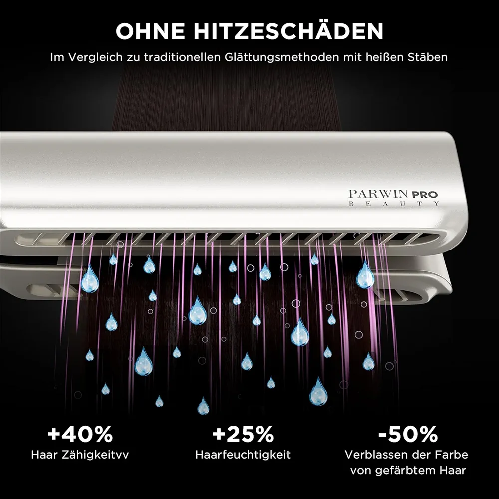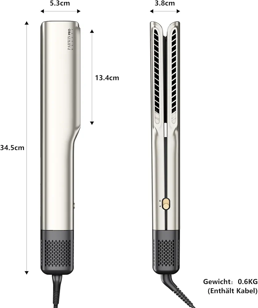 Parwin Pro Beauty Ionen Air Glätteisen AB0333 یکی از پیشرفتهترین ابزارهای آرایشی برای صاف کردن و حالتدهی موهاست که با بهرهگیری از فناوری هوای داغ + یونهای منفی (Ionic Technology) طراحی شده است. این دستگاه نهتنها موها را صاف میکند، بلکه در حین کار از وز شدن و آسیب دیدن تارهای مو جلوگیری مینماید و ظاهری صاف، براق و سالم به موها میبخشد.