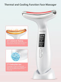 این دستگاه لیفتینگ ماساژور صورت و گردن با بهرهگیری از EMS (الکترو میکروکارنت)، ماساژ با فرکانس بالا، نور درمانی LED در ۴ رنگ و عملکرد گرم ۴۵ °C و سرد ۵ °C، بهصورت همزمان چندین نیاز پوستی را هدف قرار میدهد. نور قرمز باعث افزایش فعالیت سلولی و کلاژنسازی میشود، نور سبز به کاهش التهابات کمک میکند، نور آبی با پوستهای مستعد آکنه سازگار است و نور نارنجی موجب بهبود خطوط ریز میشود. حالت سرد (۵ °C) برای کاهش تورم، آرامسازی پوست و جمعکردن منافذ موثر است، در حالی که گرما (۴۵ °C) همراه با ماساژ به تقویت جذب محصولات مراقبتی کمک میکند. �