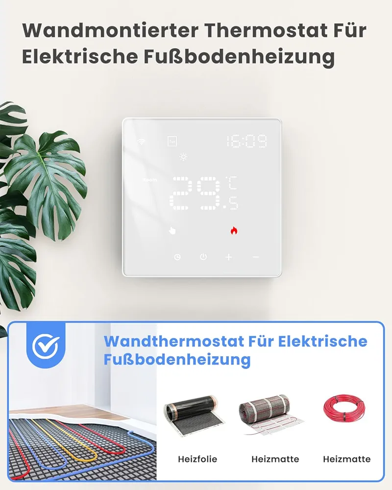 ترموستات هوشمند گرمایش از کف یک کنترلکننده دیجیتال پیشرفته است که برای سیستمهای گرمایش از کف الکتریکی طراحی شده و امکان تنظیم دقیق دما، کنترل از راه دور، برنامهریزی هفتگی و هماهنگی با دستیارهای صوتی هوشمند را فراهم میکند. این ترموستات با اتصال Wi-Fi و پشتیبانی از برنامههای محبوب مانند Smart Life یا Tuya، تجربهای بینظیر از مدیریت دما را برای خانههای مدرن به ارمغان میآورد. �