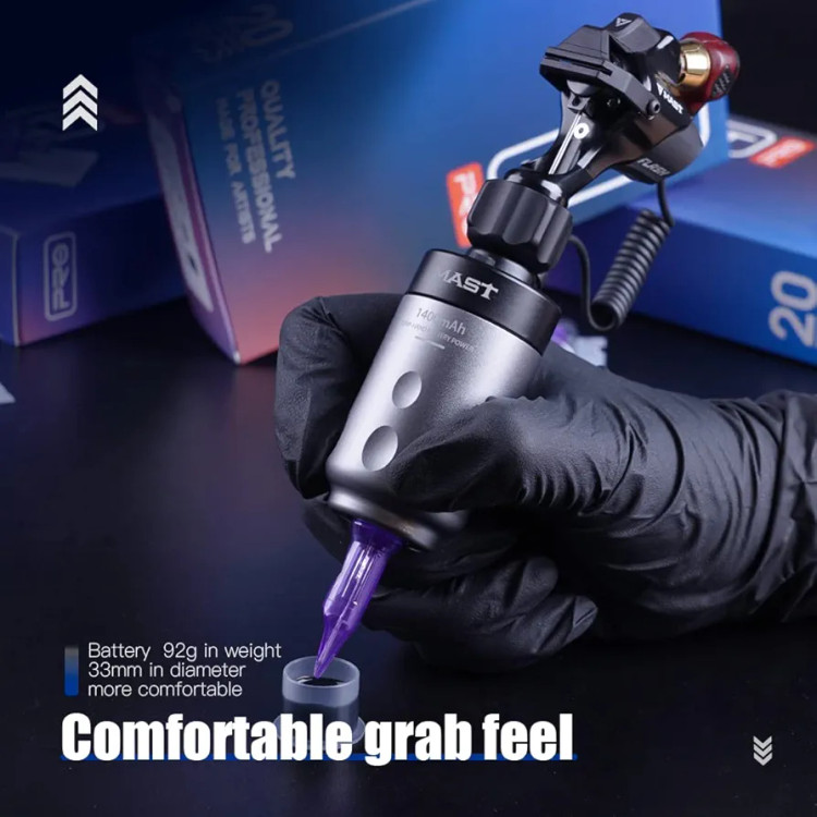 این باتری وایرلس بهراحتی به دستگاههای تاتو پن روتاری با اتصال RCA متصل میشود و با ولتاژ قابل تنظیم، امکان اجرای انواع سبکهای تاتو از لاینورک ظریف تا شیدینگ و بلکورک را فراهم میکند. وجود نمایشگر LED دیجیتال روی بدنه، کنترل دقیق ولتاژ و مدیریت بهتر انرژی را برای کاربر ممکن میسازد.