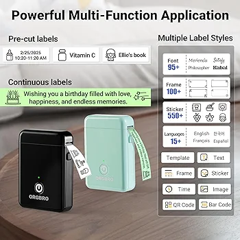 اپلیکیشن اختصاصی دستگاه بیش از 95 فونت مختلف، 550 قالب آماده، نمادها، بارکد، QR Code و پشتیبانی از بیش از 15 زبان را ارائه میدهد. این یعنی بدون نیاز به دانش طراحی، تنها با گوشی خود میتوانید لیبلهایی حرفهای و جذاب بسازید.