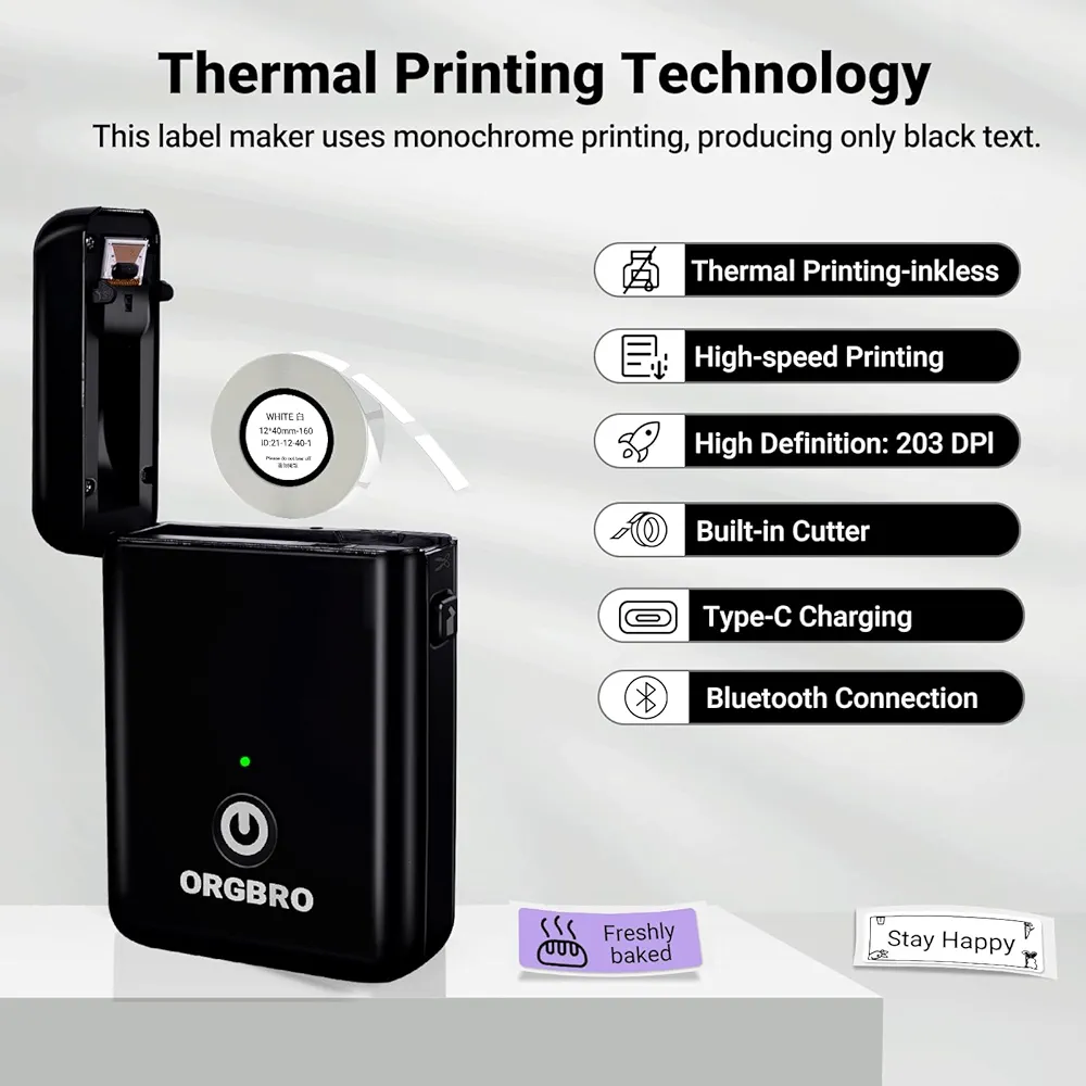 بدنه کوچک و طراحی مینیمال ORGBRO X1 آن را به گزینهای عالی برای استفاده در خانه، محل کار، فروشگاه، مدرسه، انبار و حتی کسبوکارهای کوچک تبدیل کرده است. این لیبلزن از یک باتری 2000 میلیآمپری قابلشارژ بهره میبرد که با یک بار شارژ، ساعتها عملکرد بیوقفه ارائه میدهد. همچنین از طیف گستردهای از رولهای لیبل شامل لیبلهای برشخورده و لیبلهای پیوسته 14 تا 15 میلیمتری پشتیبانی میکند.