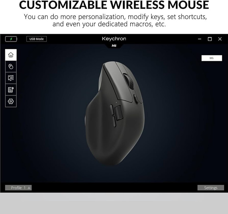 این ماوس از نرمافزار اختصاصی Keychron پشتیبانی میکند که به کمک آن میتوانید دکمههای قابل برنامهریزی را شخصیسازی کرده و ماکروهای حرفهای تعریف کنید. این قابلیت برای گیمرها، طراحان و کاربران اداری که نیاز به سرعت و اتوماسیون دارند بسیار کاربردی است.