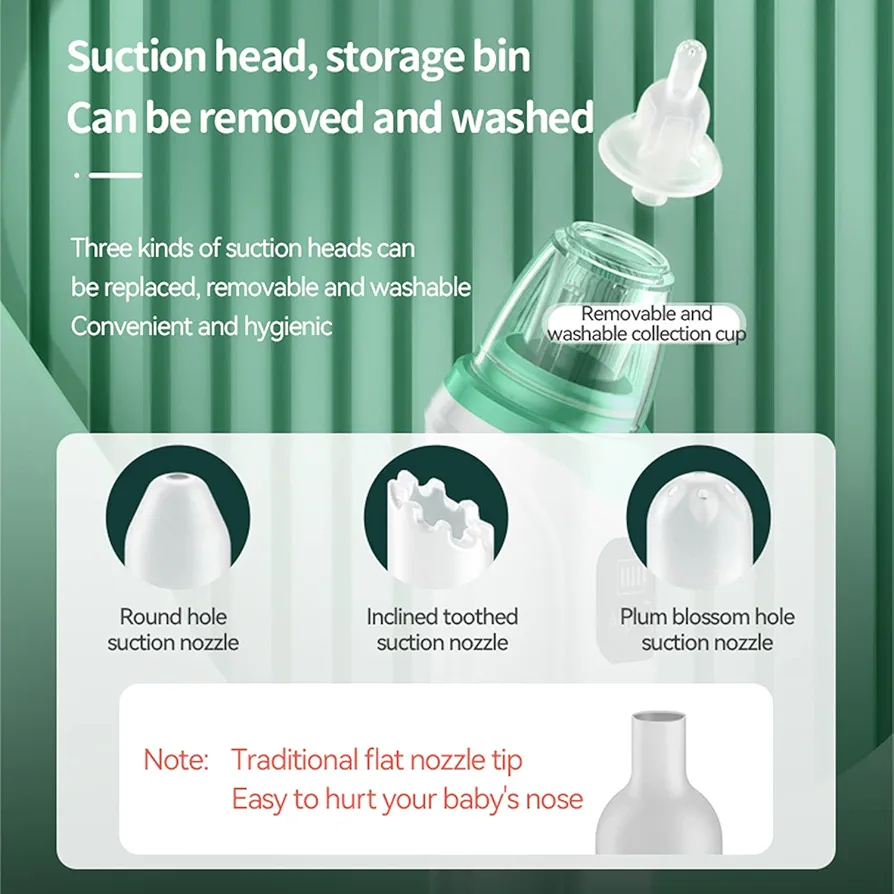 طراحی ارگونومیک دستگاه باعث میشود بهراحتی در دست قرار بگیرد و هنگام استفاده خستهکننده نباشد. یکی از مهمترین مزیتهای این مدل، وجود سه سری قابلتعویض است که برای سنین مختلف و نوع مخاط (خشک یا مرطوب) طراحی شدهاند. این قابلیت باعث میشود دستگاه برای نوزادان، کودکان و حتی بزرگسالان کاربردی باشد.