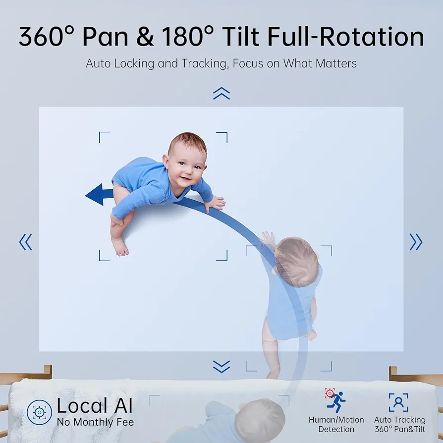پشتیبانی از WiFi دو بانده 2.4 و 5 گیگاهرتز باعث اتصال پایدارتر و سرعت انتقال بهتر تصویر میشود؛ قابلیتی که در بسیاری از دوربینهای اقتصادی وجود ندارد. این مدل با قابلیت چرخش 360 درجه افقی و 180 درجه عمودی، پوشش کامل محیط را فراهم کرده و نقاط کور را به حداقل میرساند.