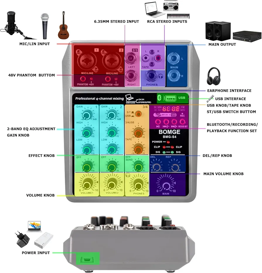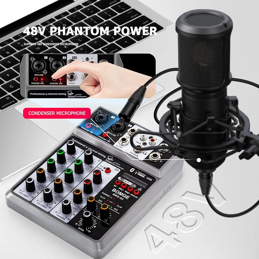 اگر به دنبال یک میکسر صدا حرفهای و اقتصادی برای ضبط پادکست، اجرای زنده، استریمینگ یا تولید محتوا هستید، BOMGE Professional Audio Mixer 4 Channel یک انتخاب کاربردی و مقرونبهصرفه محسوب میشود. این میکسر صدا ۴ کاناله با بلوتوث و USB امکان اتصال میکروفن، ساز، لپتاپ و حتی پخش موسیقی از طریق بلوتوث را فراهم میکند و برای استودیو خانگی، دیجیهای مبتدی و تولیدکنندگان محتوا گزینهای مناسب است.