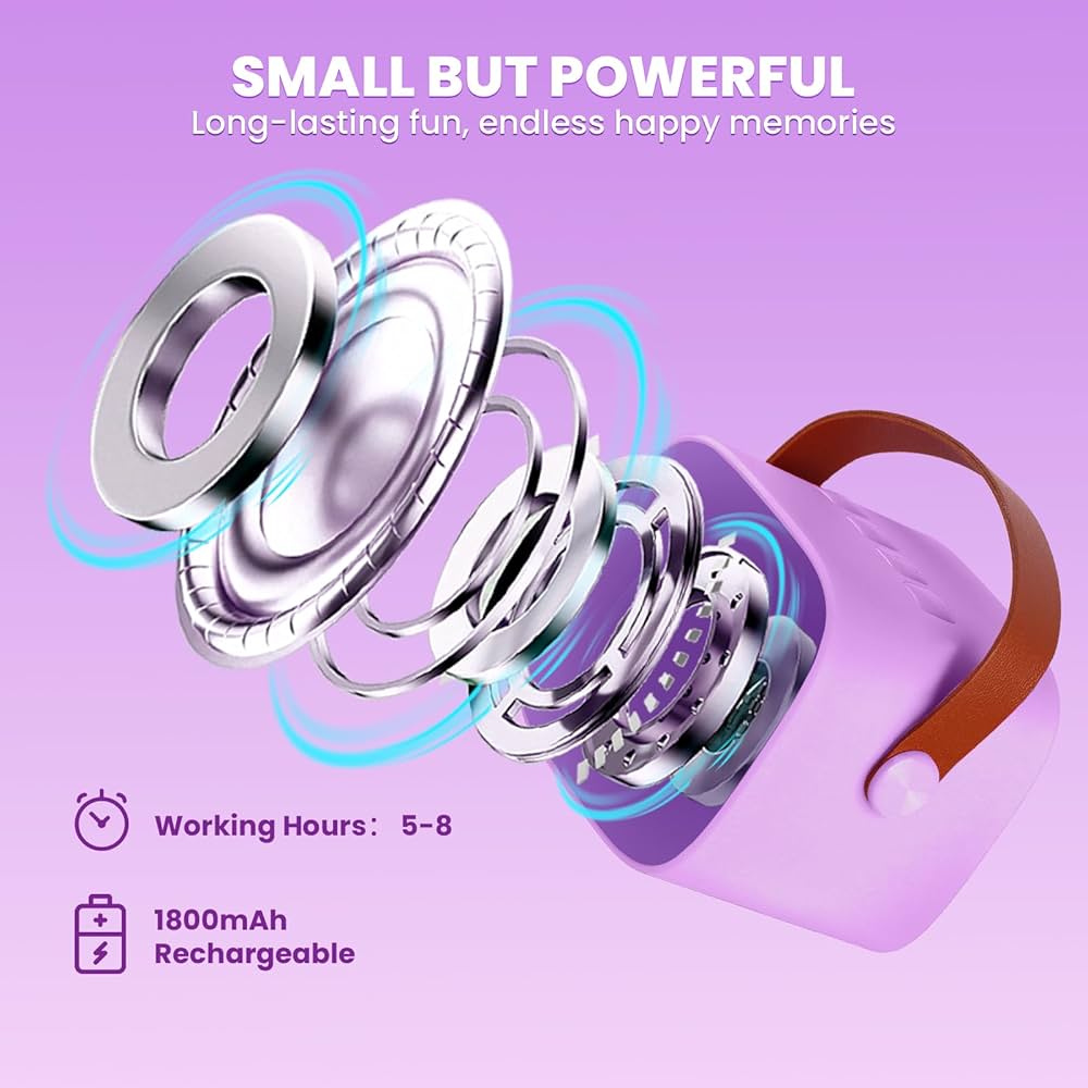 این کارائوکه قابل حمل مجهز به اسپیکر داخلی قدرتمند و اتصال Bluetooth است؛ بنابراین بهراحتی میتوانید آن را به موبایل، تبلت یا لپتاپ متصل کرده و آهنگهای مورد علاقه خود را پخش کنید. وجود ۲ میکروفون همزمان باعث میشود کودکان بتوانند بهصورت دو نفره آواز بخوانند و تجربهای شاد و تعاملی داشته باشند.