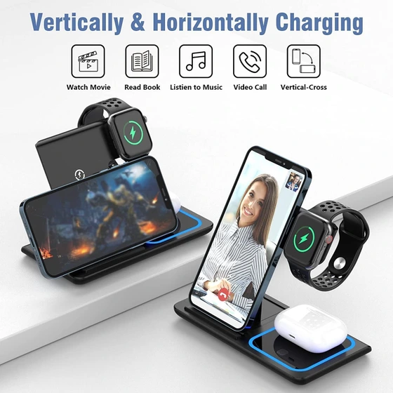 پایه شارژ بیسیم 3 in 1 مناسب استفاده در خانه، محل کار و سفر است و به کمک کابل USB-C همراه به برق وصل میشود. � با وزن سبک و طراحی استاندارد، این محصول میتواند نیاز اکثر کاربران دستگاههای هوشمند را پوشش دهد و تجربهای جدید از شارژ سریع، بیسیم و منظم ارائه دهد.