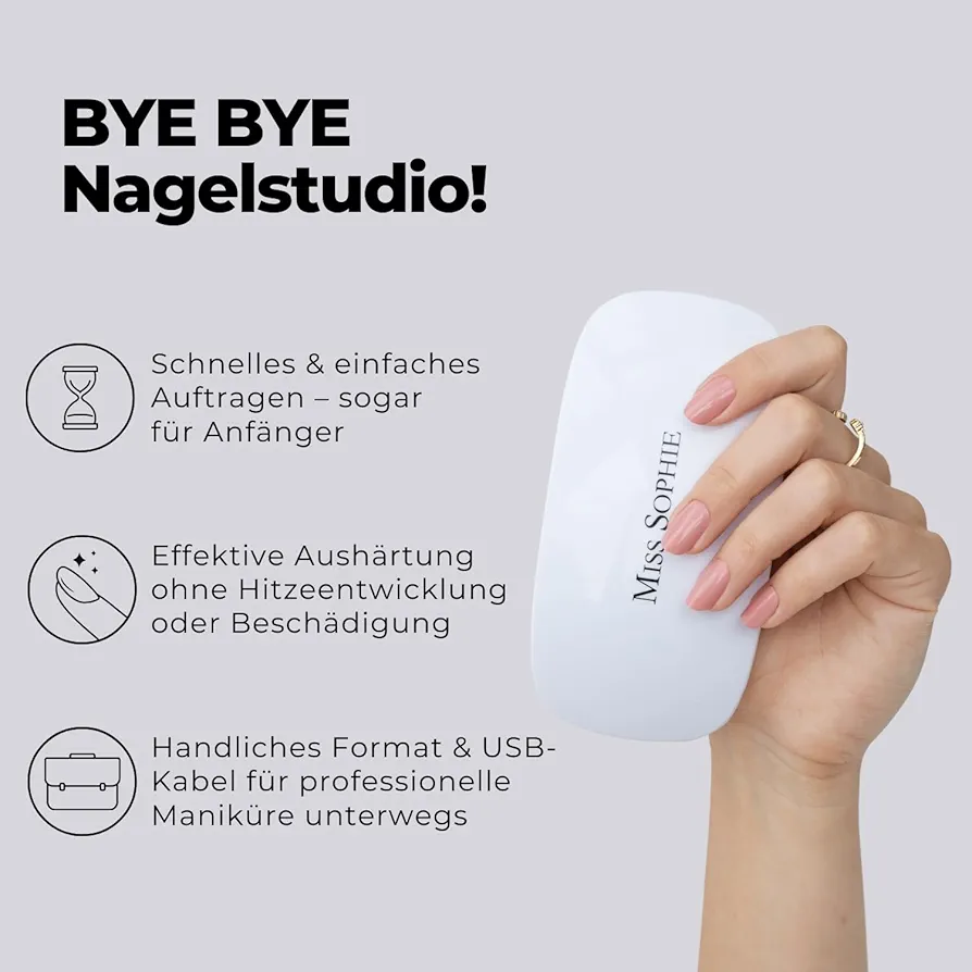 اگر به دنبال یک دستگاه لاک خشککن ژلی قابل حمل و حرفهای هستید که بتوانید در خانه یا سفر از آن استفاده کنید، Miss Sophie Portable Studio Travel UV Nail Lamp انتخابی هوشمندانه و کاربردی است. این لامپ UV LED ناخن با طراحی سبک و کمحجم، مخصوص افرادی طراحی شده که به مانیکور ژلی با کیفیت سالن زیبایی اهمیت میدهند اما به دنبال یک گزینه اقتصادی و قابل حمل هستند.