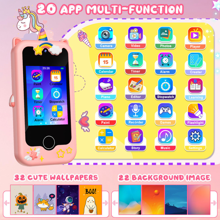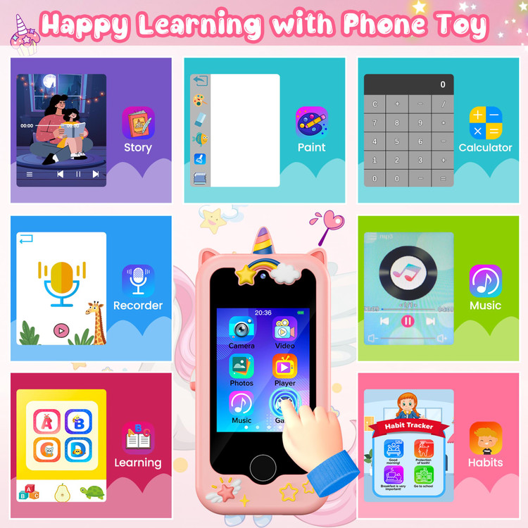 مشخصات فنی گوشی اسباببازی کودک Gofunly T80 مدل یونیکورن