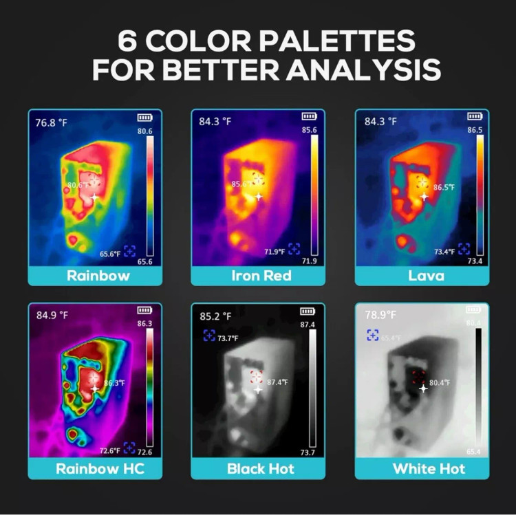 | پالت رنگی (Color Palettes) | Rainbow, Iron Red, White Hot, Lava, Cold Color |