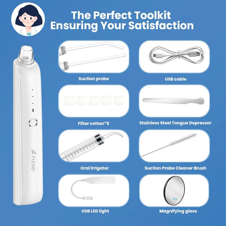 | اقلام همراه | سرنگ شستشو، آینه 5x، ابزار جانبی، کابل USB |