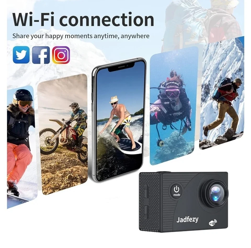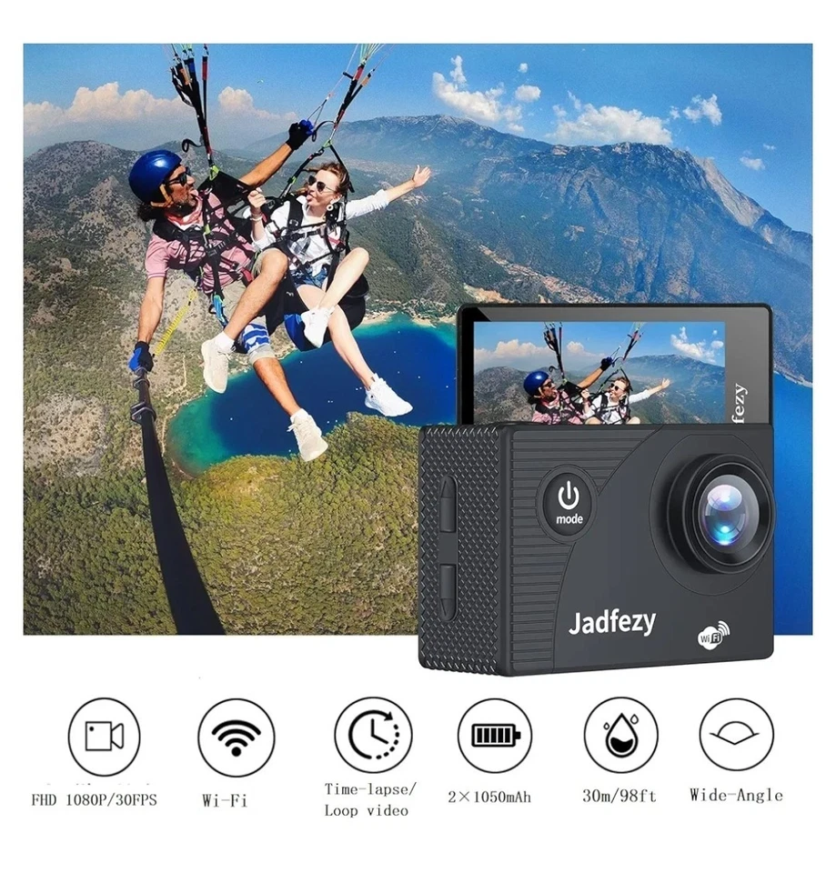 ویژگی توضیحات برند Jadfezy کیفیت فیلمبرداری Full HD اتصال WiFi قابلیتها تایملپس، داشکم، فیلمبرداری ورزشی باتری ۲ عدد باتری یدکی ضدآب بله (با محفظه مخصوص)