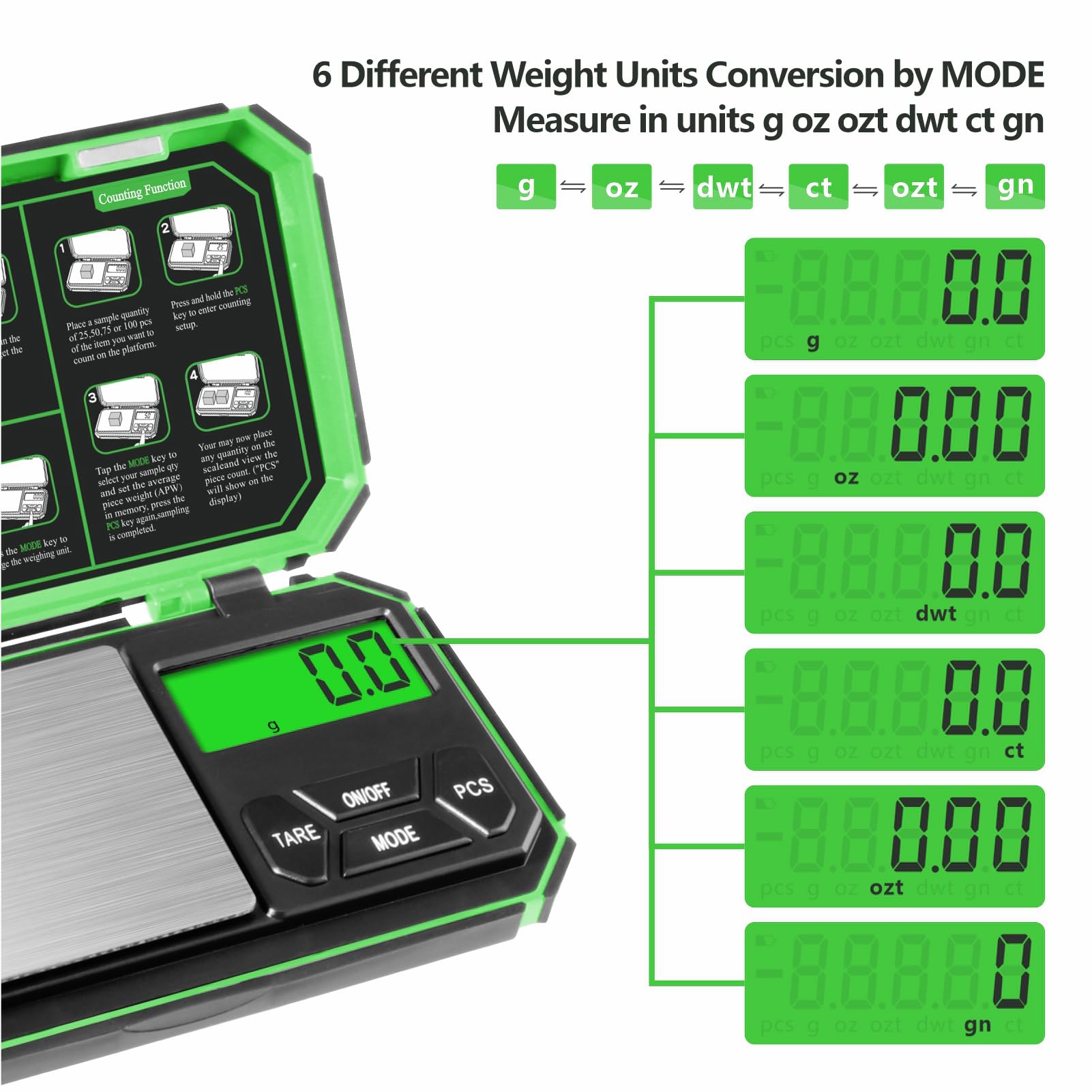 | واحدهای قابل اندازهگیری | g, oz, ozt, dwt, ct, gn |