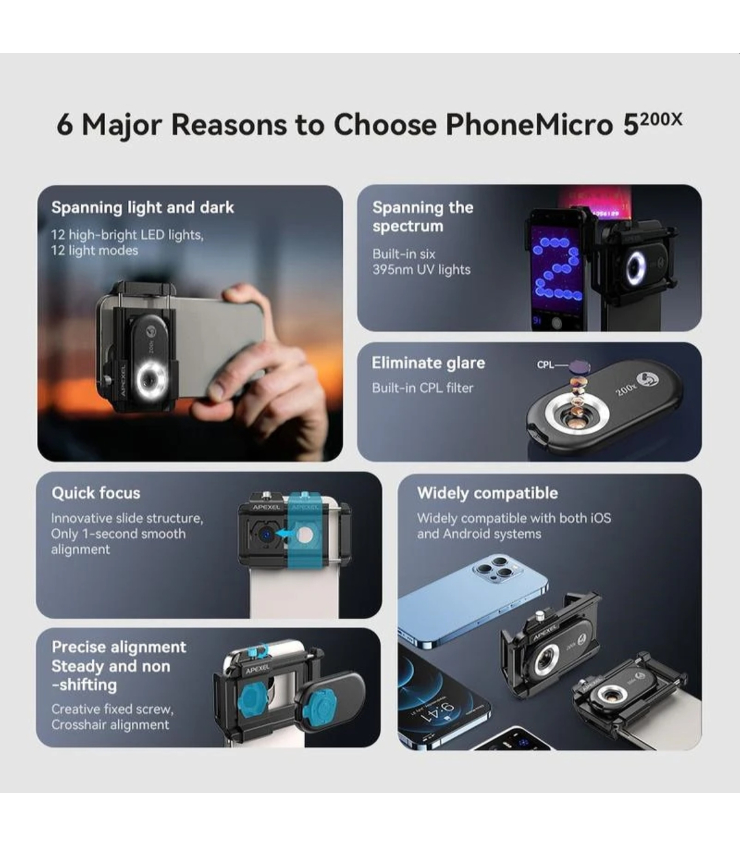 چه برای دانشآموزان و دانشجویان، چه برای کلکسیونرها، جواهرسازان یا تعمیرکاران حرفهای، میکروسکوپ دیجیتال Apexel APL-MS200 ابزاری ایدهآل است که نیازهای متنوع شما را پوشش میدهد. با خرید این محصول، دقت، کیفیت و سهولت کاربری را در کنار هم تجربه خواهی
