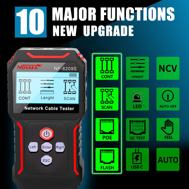 | قابلیتها | تست کابل، ردیابی سیم، اندازهگیری طول، تشخیص خطا، شناسایی PoE، پورت فلشینگ |