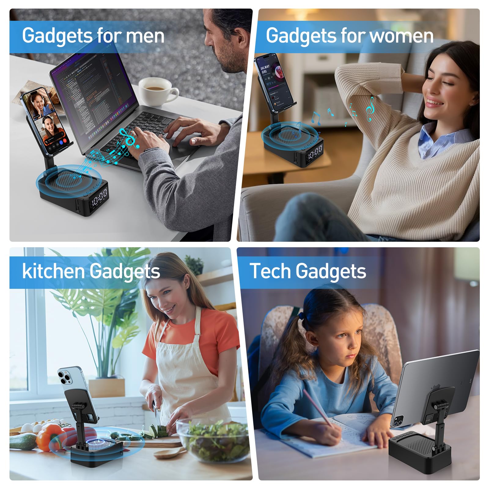 چند کاره: اسپیکر بلوتوثی، رادیو ، استند موبایل، ساعت دیجیتال