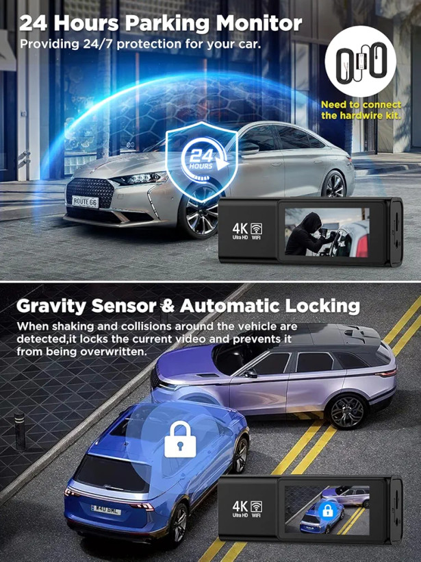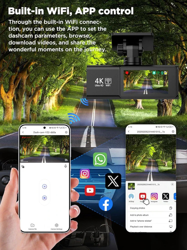 دوربین خودرو SAVUSCAM با رزولوشن 4K+1080P، دید وسیع، WiFi داخلی و حسگر ضربه؛ ضبط همزمان جلو و عقب برای امنیت کامل در سفرهای شم
